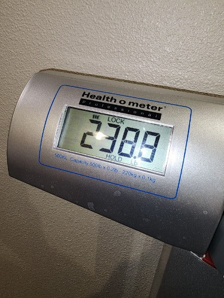 Current weight: 238.8 pounds (as of March 10, 2026)